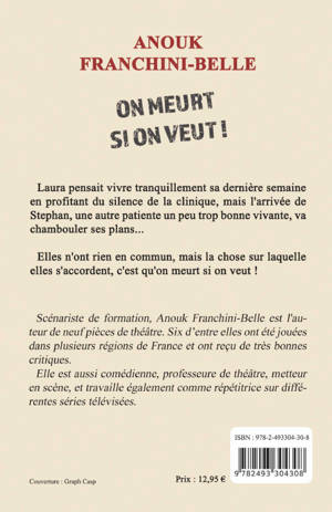 Laura pensait vivre tranquillement sa dernière semaine en profitant du silence de la clinique, mais l'arrivée de Stephan une autre patiente un peu trop bonne vivante, va chambouler ses plans.... Elles n'ont rien en commun mais la chose sur laquelle elles s'accordent c'est qu'on meurt si on veut !
