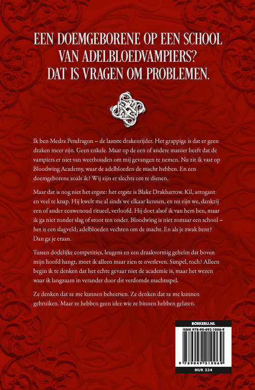Ik ben Medra Pendragon – de laatste drakenrijder. Het grappige is dat er geen draken meer over zijn. Geen enkele. Maar op de een of andere manier heeft dat de vampiers er niet van weerhouden om mij gevangen te nemen. Nu zit ik vast op Bloodwing Academy, waar de highbloods de macht hebben. En een blightborn zoals ik? Wij zijn er slechts om te dienen.