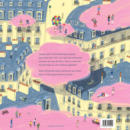Ce matin, comme tous les matins, Oncle Bernard est parti acheter un croissant avec son chien Fibi. Mais malheur, Fibi s'est échappé ! Par où est-il passé ? Dût-il traverser tout Paris, du canal Saint-Martin à la place de l'Étoile, Oncle Bernard est bien décidé à retrouver son chien ! Un cherche et trouve dans un Paris délirant et gourmand, envahi de pâtisseries géantes, comme si l'on était plongé dans le plus délicieux des rêves.