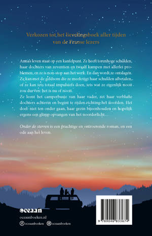 Anna's leven staat op een kantelpunt. Ze heeft torenhoge schulden, haar dochters van 17 en 12 kampen met allerlei problemen, en ze is eigenlijk non-stop aan het werk. En dan wordt ze ontslagen. Ze kan met de geldsom die ze meekrijgt haar schulden afbetalen, of ze kan iets totaal impulsiefs doen, iets wat ze eigenlijk nooit zou durven: het is nu of nooit. Ze leent het camperbusje van haar vader, zet haar verblufte dochters achterin en begint te rijden richting noorden. Het doel: niet ten onder gaan, haar gezin bijeen houden en hopelijk ergens een glimp opvangen van het noorderlicht… Onder de sterren is een prachtige en ontroerende roman, en een ode aan het leven.