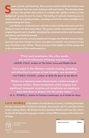 One Moment marks his American debut. The poems within are presented in their original Spanish and in English, translated by acclaimed writers and translators Idra Novey and Garth Greenwell.