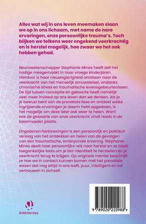 Ongeboren herinneringen is een persoonlijk en poëtisch verslag van het ontdekken en helen van de gevolgen van een traumatische, embryonale ervaring.