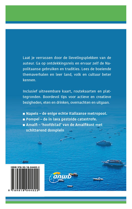 Verken Napels en de Amalfikust op een andere manier met de uitgebreide ANWB Ontdek reisgids Napels & Amalfikust! Natuurlijk mag je bezienswaardigheden zoals Pompeï en koninklijk paleis Caserta niet missen, maar ga ook eens van de gebaande paden en bezoek de hete bronnen van de Campi Flegrei of struin door straatjes van vissersdorp Corricella.