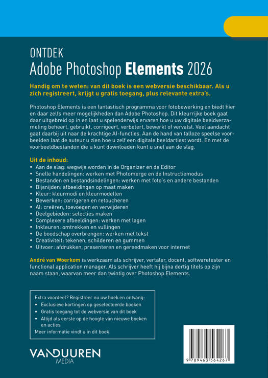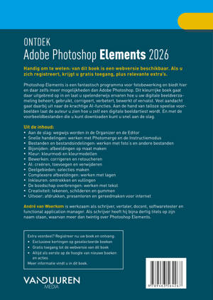 Met een gebruiksvriendelijke instap gidst dit boek je stap voor stap door zowel de Organizer als de Editor, zelfs als je nog weinig ervaring hebt. Ontdek tijdbesparende technieken zoals Photomerge en de Instructiemodus om in een handomdraai indrukwekkende composities te maken. Daarnaast worden geavanceerde technieken behandeld, zoals het werken met lagen, het maken van precieze selecties en het toevoegen van tekst, zodat je je bewerkingen naar een hoger niveau kunt tillen.