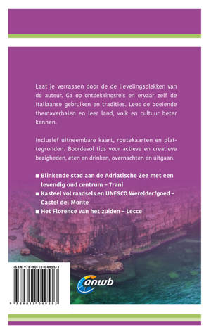 Deze reisgids biedt naast praktische tips over routes, hotels en vervoer ook originele ontdekkingstochten door het land. De auteur laat juist díe plekjes zien waar de andere toeristen aan voorbij lopen. Achter in de handzame gids zit een uitneembare kaart. Kortom: deze reisgids is een onmisbare reisgezel tijdens je vakantie door Puglia.