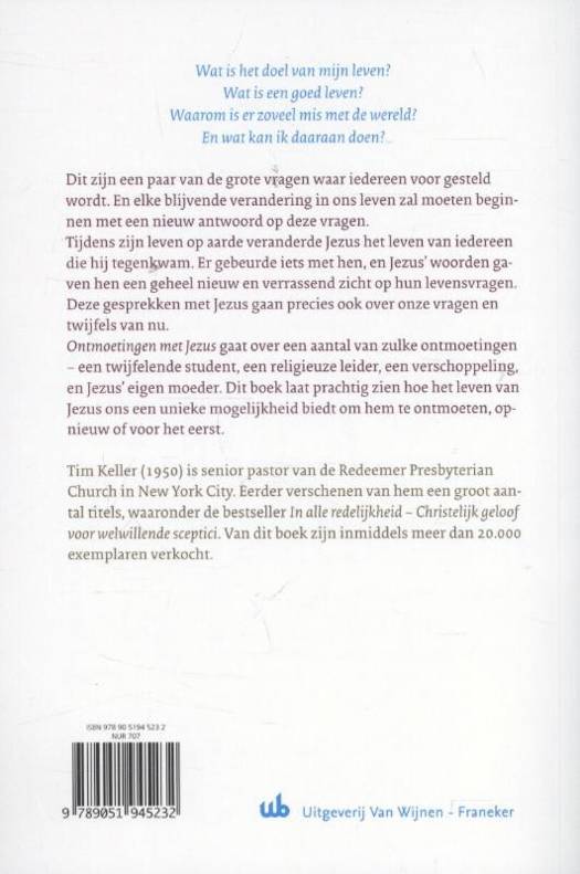 Tim Keller (1950) is senior pastor van de Redeemer Presbyterian Church in New York City. Eerder verschenen van hem een groot aantal titels, waaronder de bestseller In alle redelijkheid - Christelijk geloof voor welwillende sceptici. Van dit boek zijn inmiddels meer dan 20.000 exemplaren verkocht.