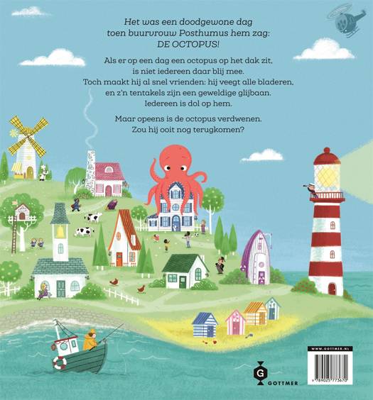 'Onze octopus' is een vrolijk prentenboek van Peter Bently en Steven Lenton, op rijm vertaald door Gouden Griffel-winnaar Bette Westera. In 'Onze octopus' gebeurt er iets heel bijzonders. Op een doodgewone dag ziet de buurvrouw ineens iets raars op het dak: een enorme, oogverblindende, neon roze octopus! Eerst probeert de brandweer hem van het dak af te spuiten, maar dan blijkt dat het eigenlijk heel handig en gezellig is om een octopus op je dak te hebben. Met zijn acht tentakels is hij een geweldige voetballer, helpt hij met de was en het zoeken van kwijtgeraakte spullen, veegt hij blaadjes aan en... hij is een geweldige glijbaan. Alle buren worden jaloers, zij willen ook een octopus! Of een inktvis, dat is ook goed. 'Onze octopus' is een onverwacht, grappig en hartverwarmend prentenboek over het verwelkomen van vreemdelingen en nieuwelingen - ze zouden je leven zomaar eens beter kunnen maken!