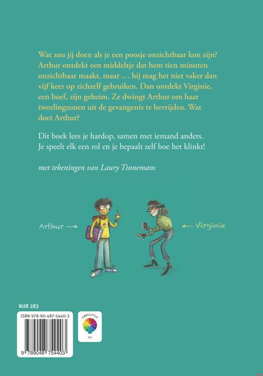 Arthur experimenteert met een geheimzinnige middeltje om even onzichtbaar te kunnen zijn. Maar dan wordt hem gevraagd om zijn trucje in te zetten om iets stouts te doen. Luistert Arthur naar de boef? In dit toneelleesboek komen kinderen er via de dialogen achter hoe het verhaal afloopt. Elk kind kiest een rol en speelt hem met verve! Samen lezen ze de dialogen van dit toneelleesboek hardop voor. Met klasgenoten, vrienden of opa’s en oma’s bijvoorbeeld. Hoe dat klinkt? Dat kunnen de kinderen zelf bedenken. De boef klinkt misschien een beetje stout en Arthur is misschien wel een beetje bang. Met toneellezen leren kinderen om te lezen met intonatie.
