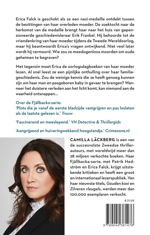 Erica Falck is geschokt als ze een nazi-medaille ontdekt tussen de bezittingen van haar overleden moeder. De zoektocht naar de herkomst van de medaille brengt Erica naar het huis van gepensioneerde geschiedenisleraar Erik Frankel. Hij behoorde tot de vriendenkring van haar moeder tijdens de Tweede Wereldoorlog, maar hij beantwoordt Erica's vragen ontwijkend. Niet veel later wordt hij vermoord. Wie zou zo meedogenloos moorden om oude geheimen te begraven? Met tegenzin moet Erica de oorlogsdagboeken van haar moeder lezen. Al snel leest ze een pijnlijke onthulling over haar familiegeschiedenis. Zou de weinige kennis die ze heeft genoeg kunnen zijn om haar man en pasgeboren baby in gevaar te brengen? Wanneer het duistere verleden aan het licht komt, kan niemand aan de waarheid ontsnappen...