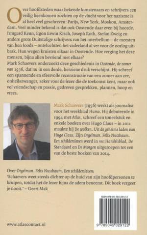 Over hoofdsteden waar bekende kunstenaars en schrijvers een veilig heenkomen zochten op de vlucht voor het nazisme is al heel veel geschreven: Parijs, New York, Moskou, Amsterdam. Veel minder bekend is dat ook Oostende daar even bij hoorde. Irmgard Keun, Egon Erwin Kisch, Joseph Roth, Stefan Zweig en andere grote Duitstalige schrijvers van het interbellum – de meesten van hen Joods – ontvluchtten het vaderland al ver voor de oorlog uitbrak. Hun wegen kruisten elkaar in Oostende. Hoe verging het deze mensen, bijna allen bevriend met elkaar? Mark Schaevers onderzoekt deze geschiedenis in Oostende, de zomer van 1936, dat nu in een derde, herziene druk verschijnt. Hij schreef een spannende en sfeervolle reconstructie van een zomer aan zee, onheilszwanger, zeker voor de lezer die de toekomst kent, maar ook vol vriendschap en passie, gedreven gesprekken, plannen, hoop en vrees.