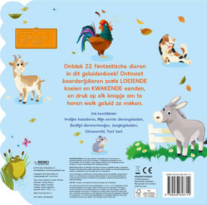 Ontdek 22 fantastische dieren in dit geluidenboek! Ontmoet boerderijdieren zoals LOEIENDE koeien en KWAKENDE eenden, en druk op elk knopje om te horen welk geluid ze maken.
