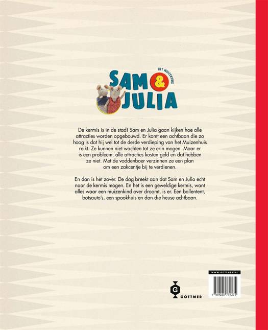 Het is kermis in de stad in dit vierde deel uit de prentenboekenreeks over Het Muizenhuis. Sam en Julia gaan kijken naar hoe alle attracties worden opgebouwd. Er is een ballentent, een angstaanjagend spookhuis en een reusachtige achtbaan die zo hoog is dat hij wel tot de derde verdieping van het Muizenhuis reikt. De twee vrienden kunnen niet wachten tot ze erin mogen. Maar er is een probleem: alle attracties kosten geld en hun portemonnee is niet bepaald gevuld. Met de voddenboer verzinnen ze een slim plan om wat extra zakgeld te verdienen. En met succes! Sam en Julia beleven een onvergetelijke dag op de kermis.