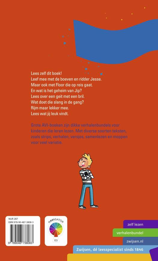 Dikke verhalenbundel voor kinderen die leren lezen. Alle teksten zijn geschreven op AVI-niveau E3. Het bevat veel verschillende soorten teksten, zoals strips, versjes, moppen, informatieve teksten en (korte) verhalen. Zo kunnen kinderen lekker doorlezen op hun eigen niveau. Van bekende schrijvers zoals Manon Sikkel, Paul van Loon en Jozua Douglas, dus voor iedere lezer wat wils!