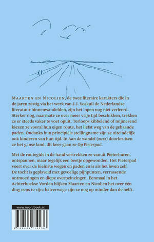 Maarten en Nicolien, de twee literaire karakters die in de jaren zestig via het werk van J.J. Voskuil de Nederlandse literatuur binnenwandelden, zijn het lopen nog niet verleerd. Sterker nog, naarmate ze over meer vrije tijd beschikken, trekken ze er steeds vaker te voet opuit. Terloops kibbelend of mijmerend kiezen ze vooral hun eigen route, het liefst weg van de gebaande paden. Ondanks hun principiële stellingname zijn ze uiteindelijk ook kinderen van hun tijd. In Aan de wandel (2022) doorkruisen ze het ganse land, dit keer gaan ze Op Pieterpad. Met de routegids in de hand vertrekken ze vanuit Pieterburen, ontspannen, maar tegelijk een beetje opgewonden. Het Pieterpad voert over de kleinste wegen en paden en is als het leven zelf. De tocht is geplaveid met gevoelige pijnpunten, verrassende ontmoetingen en diepe overpeinzingen. Eenmaal in het Achterhoekse Vorden blijken Maarten en Nicolien het over één ding eens te zijn: halverwege zijn ze nog op minder dan de helft.