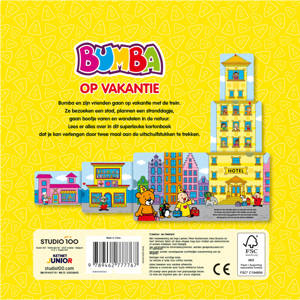 Op vakantie Bumba en zijn vrienden gaan op vakantie met de trein. Ze bezoeken de stad, plannen een stranddagje, gaan bootje varen en wandelen in de natuur. Lees er alles over in dit superleuke kartonboek dat je kan verlengen door twee maal aan de uitschuifstukken te trekken.