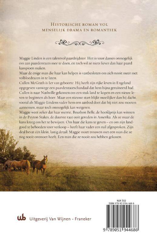 Maggie weet zeker dat haar merrie, Bourbon Belle, de hoofdprijs kan winnen in de Peyton Stakes, de duurste race ooit gereden in Amerika. Als ze maar de kans kreeg om het te bewijzen. Om haar die kans te geven - en om zijn landgoed te behoeden voor verkoop - heeft haar vader een ruil afgesproken. Zijn deal bevat een klein, lastig detail: Maggie moet trouwen met een man die ze nog nooit ontmoet heeft. Een man die ze nooit zou hebben gekozen.