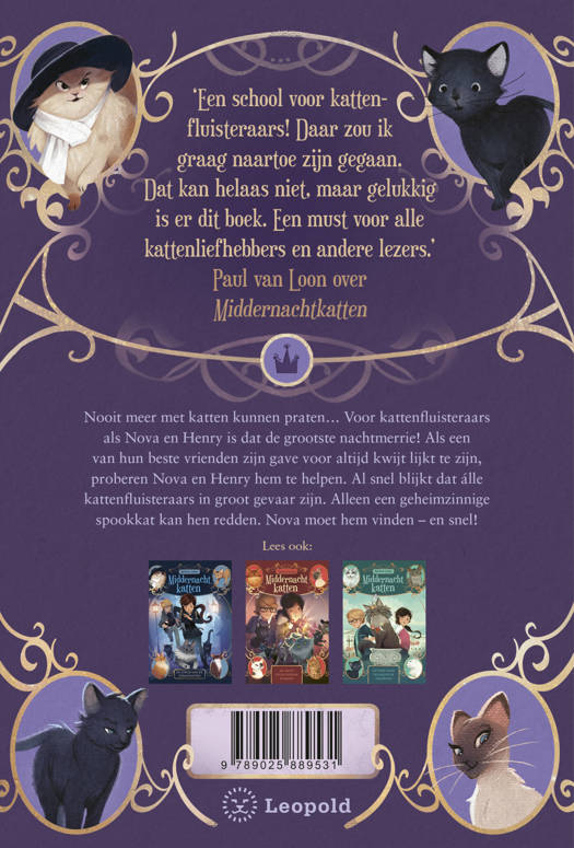Op zoek naar de spookkat is een spannend avontuur over een geheime wereld waarin katten de baas zijn, met kinderen in een heldenrol. Alle delen van de Middernachtkatten-serie zijn los van elkaar te lezen. Voor lezers vanaf 10 jaar.