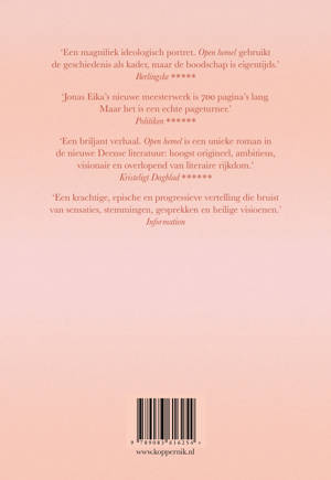 Open hemel is een genre-overstijgende historische roman over schaamte, verlangen en alles wat er moeilijk én mooi is aan het creëren van een gemeenschappelijk leven, waar we juist nu zo naar smachten.