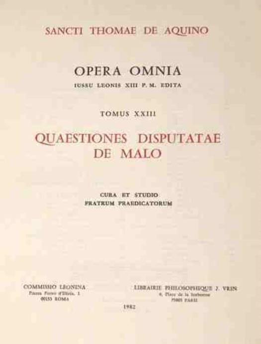 Les quinze premières questions sur le mal, très probablement disputées à Paris vers 1270, traitent de la nature, des causes et des aspects divers du mal et du péché, ainsi que des sept péchés capitaux : la question 16 sur les démons a été ajoutée en 1272. L'édition est fondée sur l'exempar (modèle) parisien (éd. P.-M. Gils).