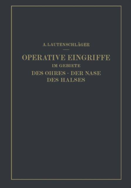 Operative Eingriffe Im Gebiete Des Ohres - Der Nase Des Halses