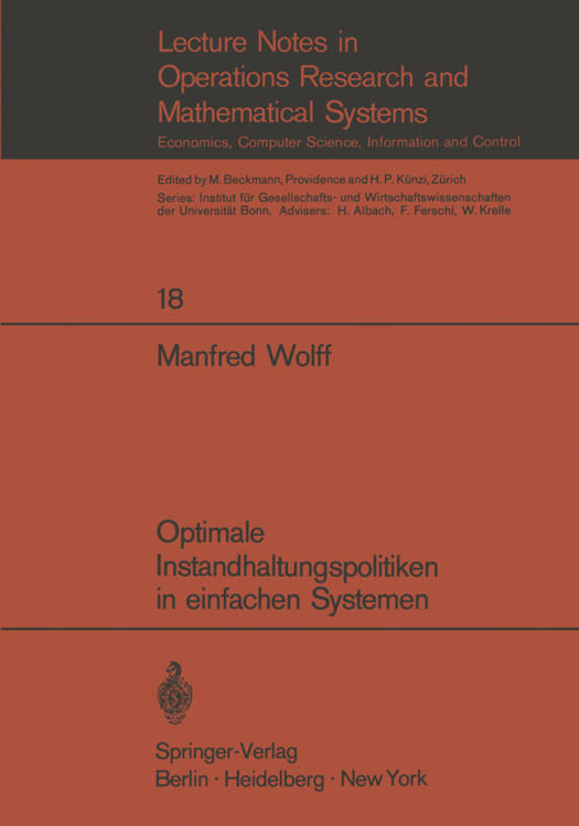 0 0 1 Problemstellung und Oberblick Unter Instandhaltungsaktionen sollen hier aIle Ma nahmen verstanden werden, die dazu dienen, den aufgrund einer vorangegangenen Investi- tionsentscheidung in einem bestimmten Betriebsmittel 1) bzwo Betriebs- mittelkomplex realisierten Leistungsquerschnitt seiner HBhe, Qualit t und Vielfalt nach innerhalb fest vorgegebener Grenzen bereitzustellen und zu sichern o Darunter fallen etwa Inspektionen zur Verschlei uber- wachung, Funktions- und Qualit tskontrollen, aber auch Reparaturen, Oberholungen, (vorbeugender) Teileaustausch und der (vorbeugende) identische Ersatz des Betriebsmittels bzwo Betriebsmittelkomplexes. Als Investitionsaktionen werden aIle Ubrigen M nahmen bezeichnet, die eine Veranderung des bisherigen Leistungsquerschnittes eines Betriebs- mittels bzwo Betriebsmittelkomplexes oder eine Veranderung des derzei- tigen Betriebsmittelbestandes nach Typ oder Umfang bewirkeno H1erzu rechnen etwa bei technischen Aggregaten Umbauten und Anbauten, als auch die vollstandige Ersetzung durch e1nen technologisch anderen Typo Die vorliegende Arbeit beschaftigt sich mit der optimalen Gestaltung von Instandhaltungsaktionen - insbesondere mit der Best1mmung des optimalen Erneuerungszeitpunktes - fUr Betriebsmittel und allgemeiner fUr technische Systeme mit einer zufallsabhangigen Laufzeit zwischen zwei aufeinanderfolgenden StBrungen, wobel verschledene Zielfunktionen zugrunde gelegt werden.