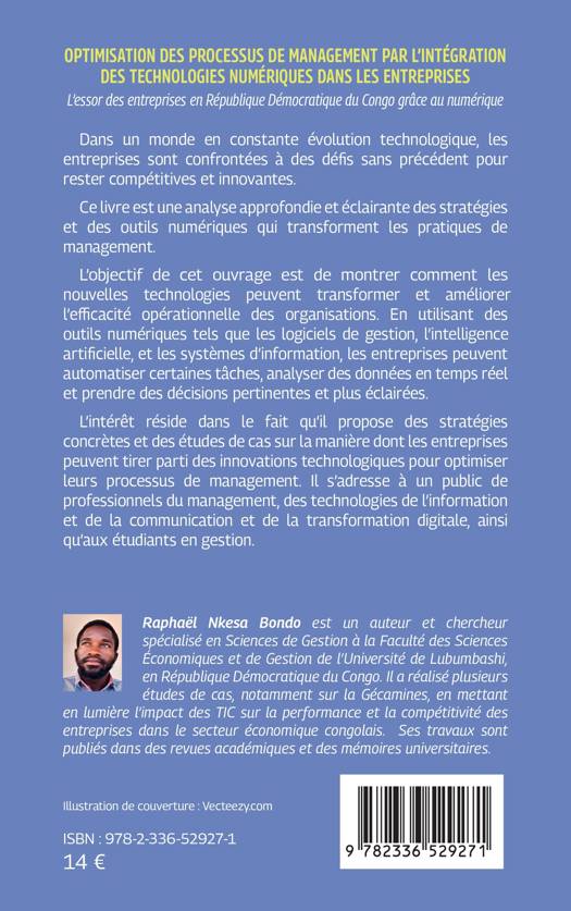 Dans un monde en constante évolution technologique, les entreprises sont confrontées à des défis sans précédent pour rester compétitives et innovantes. Ce livreest une analyse approfondie et éclairante des stratégies et des outils numériques qui transforment les pratiques de management. L'objectif de cet ouvrage est de montrer comment les nouvelles technologies peuvent transformer et améliorer l'efficacité opérationnelle des organisations. En utilisant des outils numériques tels que les logiciels de gestion, l'intelligence artificielle, et les systèmes d'information, les entreprises peuvent automatiser certaines tâches, analyser des données en temps réel et prendre des décisions pertinentes et plus éclairée. L'intérêt réside dans le fait qu'il propose des stratégies concrètes et des études de cas sur la manière dont les entreprises peuvent tirer parti des innovations technologiques pour optimiser leurs processus de management. Il s'adresse à un public de professionnels du management, des technologies de l'information et de la communication et de la transformation digitale, ainsi qu'aux étudiants en gestion.