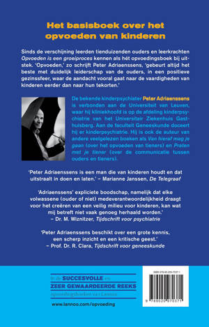 Het basisboek over het opvoeden van kinderen Sinds de verschijning leerden tienduizenden ouders en leerkrachten Opvoeden is een groeiproces kennen als hét opvoedingsboek bij uit- stek. 'Opvoeden,' zo schrijft Peter Adriaenssens, 'gebeurt altijd het beste met duidelijk leiderschap van de ouders, in een positieve gezinssfeer, waar de aandacht vooral gaat naar de vaardigheden van kinderen eerder dan naar hun tekorten.'