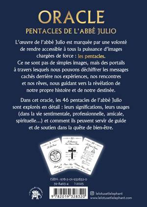 Dans cet oracle, les 46 pentacles de l’abbé Julio sont explorés en détail : leurs significations, leurs usages (dans la vie sentimentale, professionnelle, amicale, spirituelle…) et comment ils peuvent servir de guide et de soutien dans la quête de bien-être.