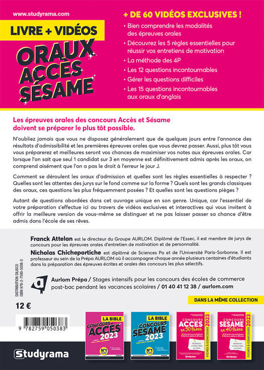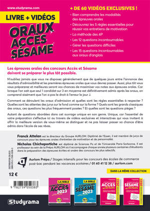 Ce livre offre une préparation aux épreuves d'entretien et de langues, de nombreux exemples pour s'approprier les réponses aux questions les plus souvent posées à l'oral et une méthode interactive qui mêle livre et vidéos (QRCodes) et qui incite à se mettre en situation.
