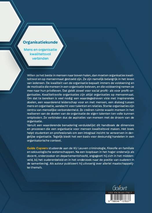 Vanuit een waarderende benadering verduidelijkt dit handboek de dimensies en processen die een organisatie voor mensen kwaliteitsvol maken. Het boek helpt studenten en professionals om een integraal inzicht te verwerven in dergelijke organisatie. Tegelijk biedt het een basis voor deskundig handelen in een organisatorische context.
