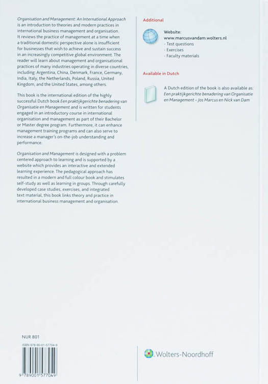 This book is designed for students taking introductory courses in organization, and international management. Through carefully developed case studies, exercises, and integrated text material, this book bridges theory and practice. The full colour layout of the book supports self-study, as well as group study and team work.