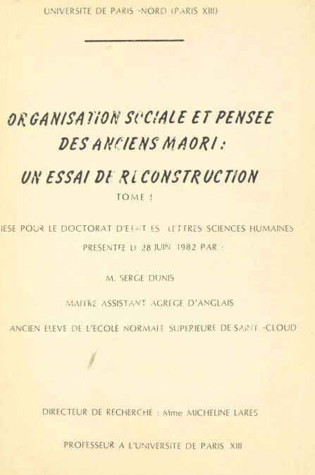 Organisation sociale et pensée des anciens Maori : un essai de reconstruction (1) EBOOK
