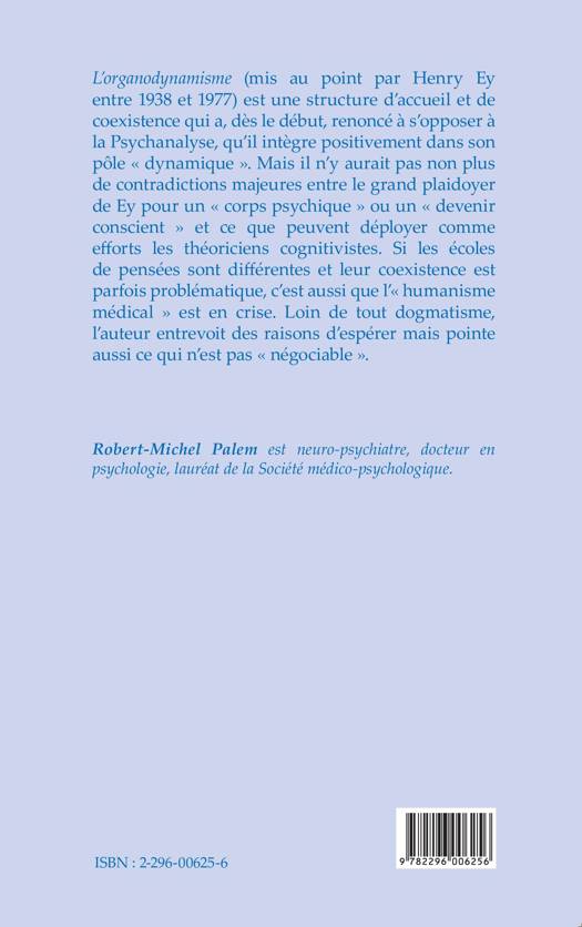 L'organodynamisme (mis au point par Henry Ey entre 1938 et 1977) est une structure d'accueil et de coexistence qui a, dès le début, renoncé à s'opposer à la Psychanalyse, qu'il intègre positivement dans son pôle "dynamique". Mais il n'y aurait pas non plus de contradictions majeures entre le grand plaidoyer de Ey pour un "corps psychique" ou un "devenir conscient" et ce que peuvent déployer comme efforts les théoriciens cognitivistes. Si les écoles de pensées sont différentes et leur coexistence est parfois problématique, c'est aussi que l'"humanisme médical" est en crise. Loin de tout dogmatisme, l'auteur entrevoit des raisons d'espérer mais pointe aussi ce qui n'est pas "négociable".