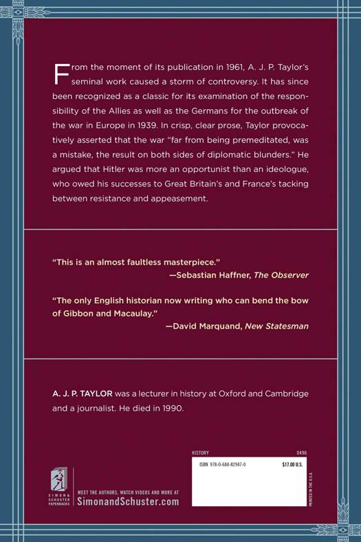 From influential British historian A.J.P. Taylor, a reprint of his influential text The Origins of the Second World War. Controversial for his thesis that Hitler was an opportunist with no thorough plan, The Origins of the Second World War is an extensive exploration of the international politics and foreign policy that lead up to the one of the bloodiest conflicts of the 20th century.Published in 1961, The Origins of the Second World War is a classic of modern history. A.J.P. Taylor's years of research helped change the long-accepted view that Adolf Hitler had wanted and planned in detail for a war. With clear and relatable prose, Taylor depicts the diplomatic mistakes from both the Allied and Axis powers that lead to the outbreak of World War II. A groundbreaking work, The Origins of the Second World War "is an almost faultless masterpiece, perfectly proportioned, perfectly controlled" (The Observer).