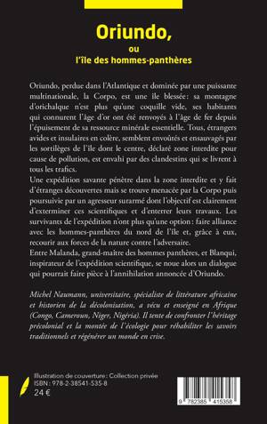 Oriundo, perdue dans l'Atlantique et dominée par une puissante multinationale, la Corpo, est une île blessée : sa montagne d'orichalque n'est plus qu'une coquille vide, ses habitants qui connurent l'âge d'or ont été renvoyés à l'âge de fer depuis l'épuisement de sa ressource minérale essentielle. Tous, étrangers avides et insulaires en colère, semblent envoûtés et ensauvagés par les sortilèges de l'île dont le centre, déclaré zone interdite pour cause de pollution, est envahi par des clandestins qui se livrent à tous les trafics. Une expédition savante pénètre dans la zone interdite et y fait d'étranges découvertes mais se trouve menacée par la Corpo puis poursuivie par un agresseur surarmé dont l'objectif est clairement d'exterminer ces scientifiques et d'enterrer leurs travaux. Les survivants de l'expédition n'ont plus qu'une option : faire alliance avec les hommes-panthères du nord de l'île et, grâce à eux, recourir aux forces de la nature contre l'adversaire. Entre Malanda, grand-maître des hommes panthères, et Blanqui, inspirateur de l'expédition scientifique, se noue alors un dialogue qui pourrait faire pièce à l'annihilation annoncée d'Oriundo.