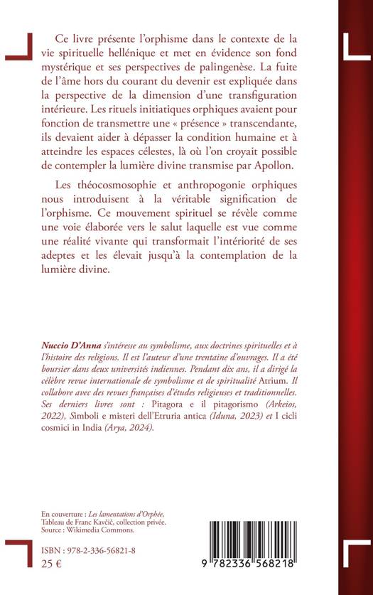 Ce livre présente l'orphisme dans le contexte de la vie spirituelle hellénique et met en évidence son fond mystérique et ses perspectives de palingenèse. La fuite de l'âme hors du courant du devenir est expliquée dans la perspective de la dimension d'une transfiguration intérieure. Les rituels initiatiques orphiques avaient pour fonction de transmettre une présence transcendante, ils devaient aider à dépasser la condition humaine et à atteindre les espaces célestes, là où l'on croyait possible de contempler la lumière divine transmise par Apollon. Les théocosmosophie et anthropogonie orphiques nous introduisent à la véritable signification de l'orphisme. Ce mouvement spirituel se révèle comme une voie élaborée vers le salut laquelle est vue comme une réalité vivante qui transformait l'intériorité de ses adeptes et les élevait jusqu'à la contemplation de la lumière divine.