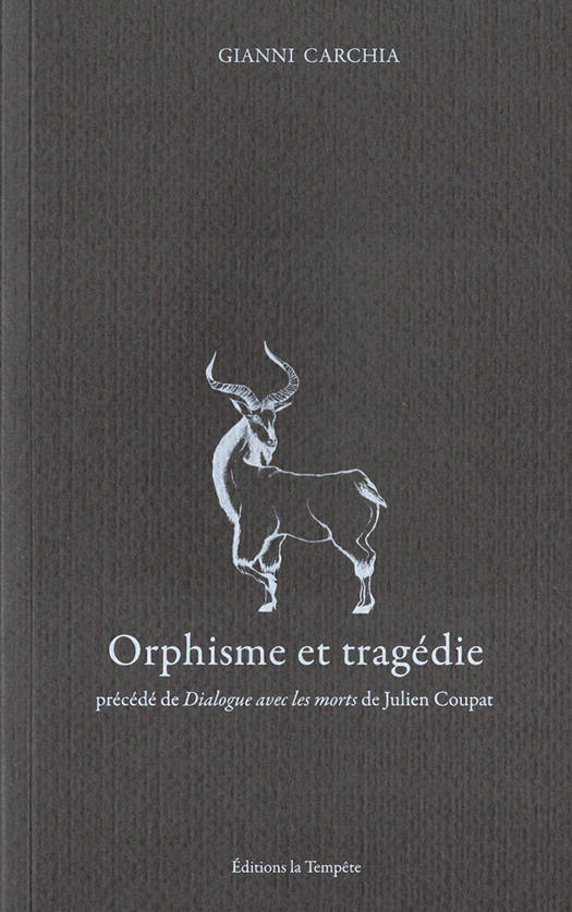 Dès son apparition en Grèce autour du VIème siècle avant JC, la doctrine orphique a constitué un puissant élément de rupture avec le monde antique. Ses pratiques salvifiques, liées à la croyance en l'immortalité de l'âme, son refus des rituels sacrificiels et le végétarisme, sa conception originale du temps et de la mémoire définissaient un mode de vie - le bios orphikos - dont la nature est à la fois poétique et politique. Cela représente pour Carchia moins une question historiographique qu'un problème esthétique et politique : si la tragédie constitue l'une des pièces fondamentales de la constitution de la polis, l'orphisme représente une voie alternative et revendique la parole poétique dans toute sa force autonome.