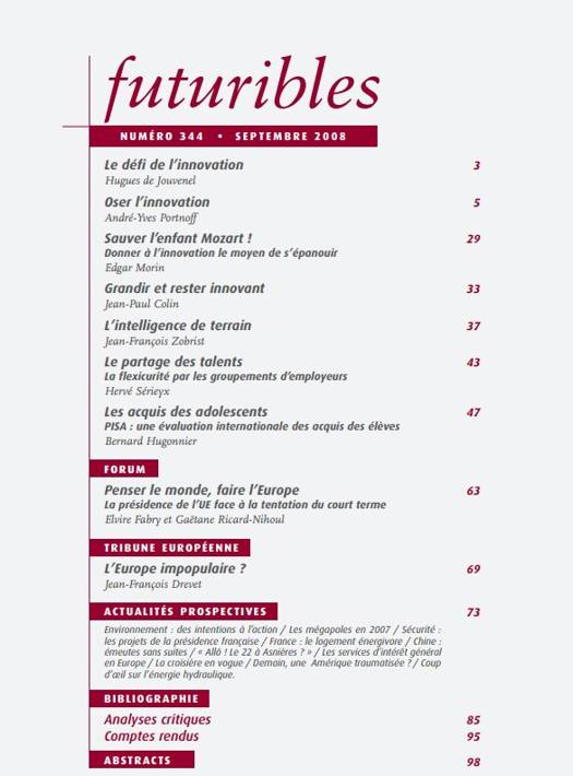 Actualités prospectives - Environnement : des intentions à l’action - Les mégapoles en 2007 - Sécurité : les projets de la présidence française - France : le logement énergivore - Chine : émeutes sans suites - « Allô ! Le 22 à Asnières ? » - Les services d’intérêt général en Europe - La croisière en vogue - Demain, une Amérique traumatisée ? - Coup d’œil sur l’énergie hydraulique.