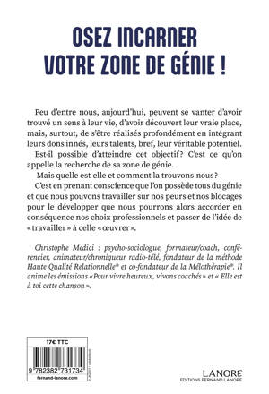 Peu d’entre nous, aujourd’hui, peuvent se vanter d’avoir trouvé un sens à leur vie, d’avoir découvert leur vraie place, mais, surtout, de s’être réalisés profondément en intégrant leurs dons innés, leurs talents, bref, leur véritable potentiel. Est-il possible d’atteindre cet objectif?? C’est ce qu’on appelle la recherche de sa zone de génie. Mais quelle est-elle et comment la trouvons-nous?? C’est en prenant conscience que l’on possède tous du génie et que nous pouvons travailler sur nos peurs et nos blocages pour le développer que nous pourrons alors accorder en conséquence nos choix professionnels et passer de l’idée de «?travailler?» à celle «?œuvrer?».