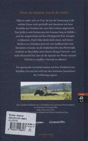 Mika ist stinksauer. Weil sie die Versetzung nicht geschafft hat, heißt es statt Feriencamp nun den Sommer lang zu büffeln - und das ausgerechnet auf dem Pferdegestüt ihrer strengen Großmutter. Doch Mika denkt nicht daran, sich hinter Büchern zu verstecken und sich vom Stallburschen Sam bewachen zu lassen. In der dunkelsten Box des Pferdstalls findet sie den wilden und scheuen Hengst Ostwind. Weder Michelle, die beste Springreiterin am Hof, noch Mikas Großmutter können das gefährliche Pferd bändigen. Magisch angezogen von dem nervösen Tier, schleicht sich Mika trotz aller Warnungen heimlich in den Stall. Das ist der Beginn einer ungewöhnlichen Freundschaft, denn Mika entdeckt dabei ihre wahre Leidenschaft und ganz besondere Gabe: Sie spricht die Sprache der Pferde! Wird sie es schaffen Ostwind zu zähmen?
