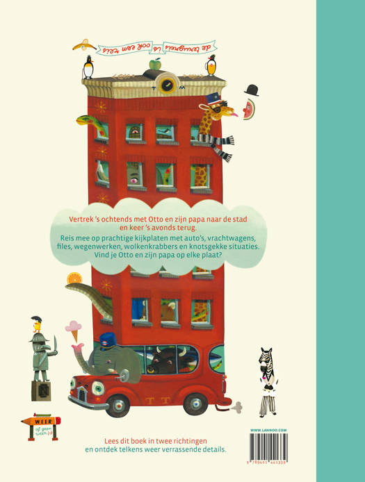 Vertrek 's ochtends met Otto en zijn papa naar de stad en keer 's avonds terug. Reis mee op prachtige kijkplaten met auto's, vrachtwagens, files, wegenwerken, wolkenkrabbers en knotsgekke situaties. Vind je Otto en zijn papa op elke plaat? Lees dit boek in twee richtingen en ontdek telkens weer verrassende details.