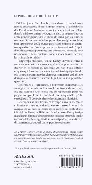 Courageux et bouleversant voyage dans la mémoire collective comme individuelle, «Où as-tu passé la nuit ?» témoigne de ce qu'il en coûte de se mettre en quête d'une identité déchirée par l'Histoire, face à une société qui exige que chacun réponde de ses origines mais qui ignore de quelle inconsolable et étrange fierté se nourrit parfois un sentiment d'appartenance auquel on ne peut se soustraire.