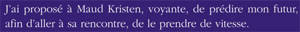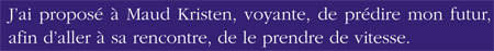 J'ai proposé à Maud Kristen, voyante, de prédire mon futur, afin d'aller à sa rencontre, de le prendre de vitesse.