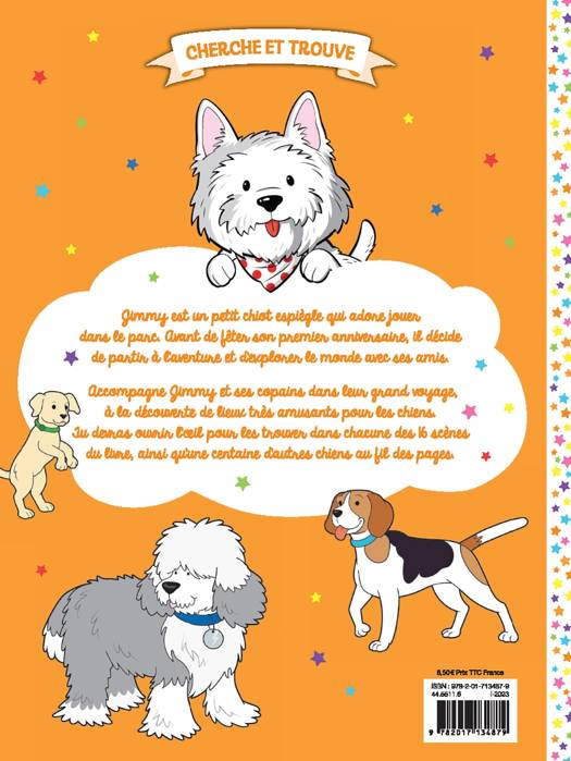 Jimmy est un chiot espiègle. Lui et ses amis ne se sont jamais aventurés au-delà de leur quartier. Pourtant, ils rêvent d'explorer le monde et de sauter dans de nouvelles flaques boueuses. C'est pourquoi, les chiens ont décidé de laisser leurs maîtres le temps d'un grand voyage et de visiter tous les lieux les plus amusants pour les toutous. 16 grandes scènes de cherche et trouve qui fourmillent de détails où il faut retrouver les 9 chiens. En bonus, plus de cent autres chiens à repérer pour corser le jeu.