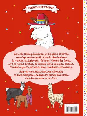 Aux quatre coins du monde, on ne parle que d'eux ! Les lamas sont devenus de véritables célébrités. Il est temps pour les lamas de quitter leurs paisibles montagnes péruviennes et de partir à la rencontre de leurs fans. Voici un grand cherche et trouve plein d'humour qui fourmille de détails et qui demande à l'enfant d'aiguiser son sens de l'observation pour s'amuser à repérer dans les 16 scènes du livre 10 lamas bien cachés !