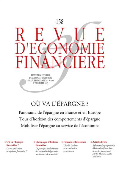 Ce numéro de la Revue d'économie financière analyse les déterminants des taux d'épargne et leurs évolutions en France et dans différents pays de la zone euro. Il analyse la distribution du patrimoine au sein de la population française, ainsi que l'accroissement des inégalités en raison du patrimoine immobilier et/ou financier. Les facteurs qui influencent le choix des épargnants sont étudiés, ainsi que le comportement d'épargne qui dépend non des systèmes de protection sociale, de la démographie, de la fiscalité, mais également de l'arrivée de nouveaux investisseurs qui se différencient des investisseurs traditionnels à plusieurs niveaux : profil, façon de s'informer et d'investir, produits détenus et services utilisés, connaissance des supports, notion de risque, etc. Le rôle de l'industrie bancaire dans la collecte et la transformation de l'épargne et comment orienter l'épargne vers des investissements de long terme viennent compléter ce dossier.