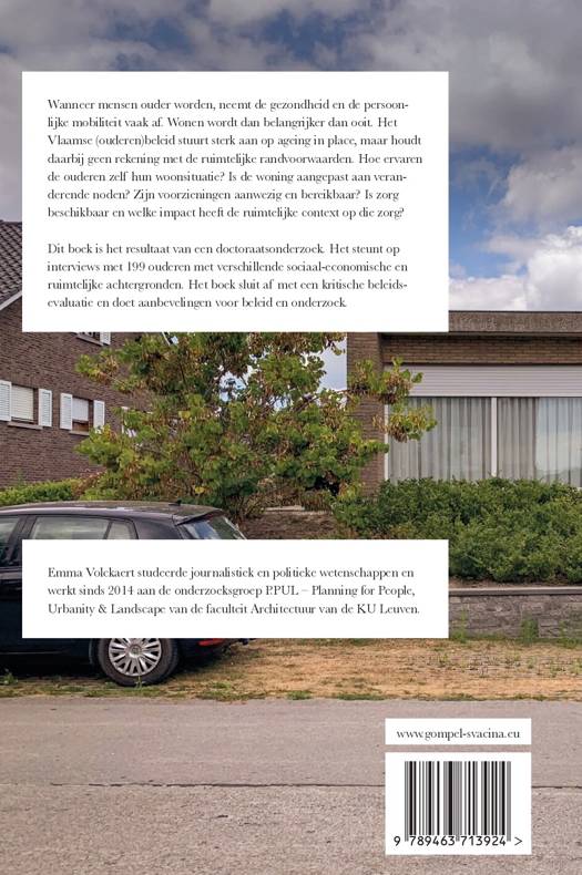 Wil je een fijne, onafhankelijke oude dag, dan kun je beter tijdig verhuizen. Dat blijkt uit Oud vasthouden, het doctoraat dat onderzoekster Emma Volckaert bij P.PUL (Planning for People, Urbanity and Landscape) van de KU Leuven maakte. ‘Zodra je de vijftig voorbij bent, zou je al moeten beginnen na te denken waar je wilt wonen als je oud wordt’, zegt ze. ‘Ook om daadwerkelijk te verhuizen, mag je niet te lang wachten. Het is belangrijk dat je aan je nieuwe woning kunt wennen en de omgeving kunt leren kennen voor je daadwerkelijk minder mobiel en zorgbehoevend wordt.’