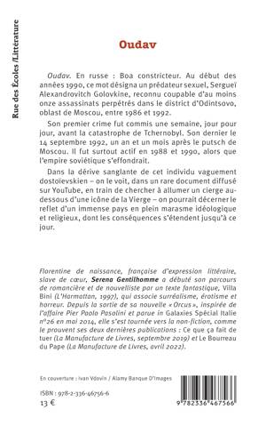 Oudav. En russe : Boa constricteur. Au début des années 1990, ce mot désigna un prédateur sexuel, Sergueï Alexandrovitch Golovkine, reconnu coupable d’au moins onze assassinats perpétrés dans le district d’Odintsovo, oblast de Moscou, entre 1986 et 1992. Son premier crime fut commis une semaine, jour pour jour, avant la catastrophe de Tchernobyl. Son dernier le 14 septembre 1992, un an et un mois après le putsch de Moscou. Il fut surtout actif en 1988 et 1990, alors que l’empire soviétique s’effondrait. Dans la dérive sanglante de cet individu vaguement dostoïevskien – on le voit, dans un rare document diffusé sur YouTube, en train de chercher à allumer un cierge au-dessous d’une icône de la Vierge – on pourrait décerner le reflet d’un immense pays en plein marasme idéologique et religieux, dont les conséquences s’étendent jusqu’à ce jour.
