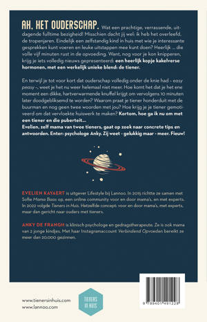 Ah, het ouderschap. Wat een prachtige, verrassende, uitdagende fulltime bezigheid! Misschien dacht jij wel: ik heb het overleefd, de tropenjaren. Eindelijk een zelfstandig kind in huis met wie je interessante gesprekken kunt voeren en leuke uitstappen mee kunt doen? Heerlijk ... die volle vijf minuten rust in de opvoeding. Want, nog voor je kon knipperen, krijg je iets volledig nieuws gepresenteerd: een heerlijk kopje kakelverse hormonen, met een werkelijk unieke blend: de tiener. En terwijl je tot voor kort dat ouderschap volledig onder de knie had - easy peasy -, weet je het nu weer helemaal niet meer. Hoe komt het dat je het ene moment een dikke, hartverwarmende knuffel krijgt om vervolgens 10 minuten later doodgebliksemd te worden? Waarom praat je tiener honderduit met de buurman en nog geen twee woorden met jou? Hoe krijg je je tiener gemotiveerd om dat vervloekte huiswerk te maken? Kortom, hoe ga ik nu om met een tiener en die puberteit... Evelien, zelf mama van twee tieners, gaat op zoek naar concrete tips en antwoorden. Enter: psychologe Anky. Zij weet - gelukkig maar - meer. Fieuw!