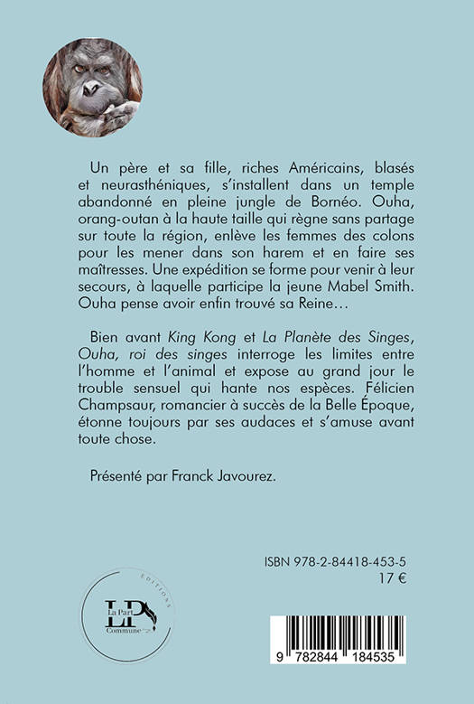 Bien avant King Kong et La Planètes des Singes, Ouha interrogeles limites entre l’homme et l’animal et expose au grand jour le trouble sensuelqui hante nos espèces. Champsaur étonne toujours par sa truculence et sesaudaces et s’amuse avant toute chose.